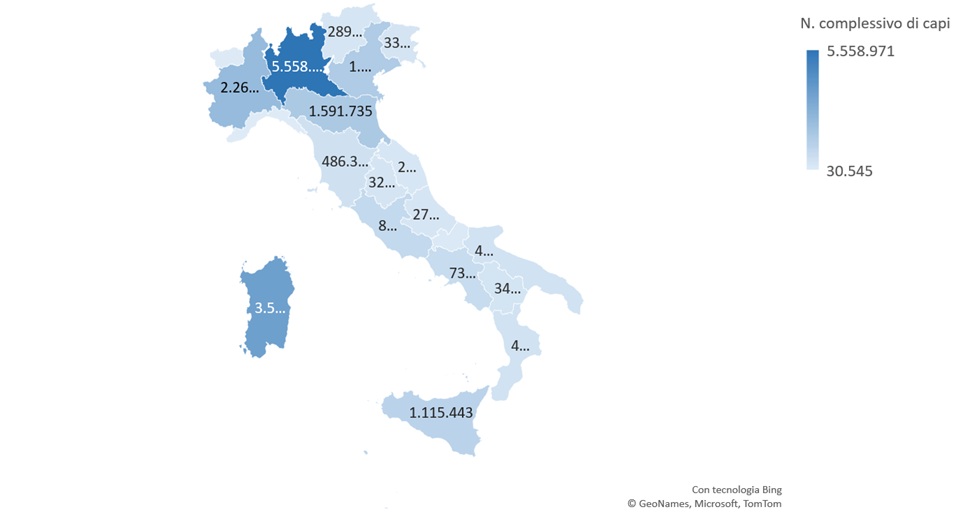 Figura 1 Distribuzione dei capi per Regione