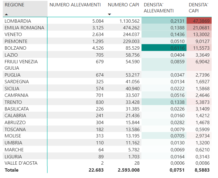 – Numero degli allevamenti a orientamento produttivo latte, numero dei capi bovini da latte e densitĆ degli allevamenti e dei capi (per KMQ) al 30/06/2025 (Banca Dati Nazionale dell’Anagrafe Zootecnica).Ā
