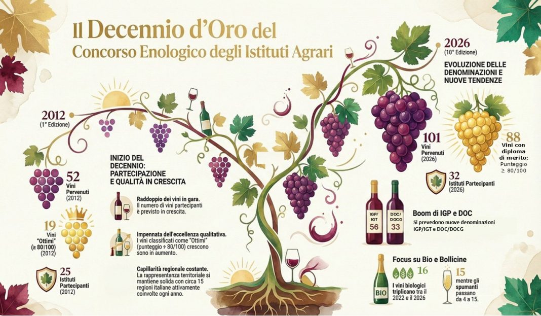 Il Concorso Enologico degli Istituti Agrari d’Italia rappresenta, per il Dicastero dell’Agricoltura, una iniziativa strategica avviata sin dal 2012, in collaborazione con il Ministero dell’Istruzione e del Merito (allora MIUR), con l’obiettivo di valorizzare e mettere a confronto le produzioni vitivinicole degli Istituti con indirizzo agroalimentare, promuovendo al contempo elevati standard qualitativi e una didattica sempre più aderente alle esigenze del settore.